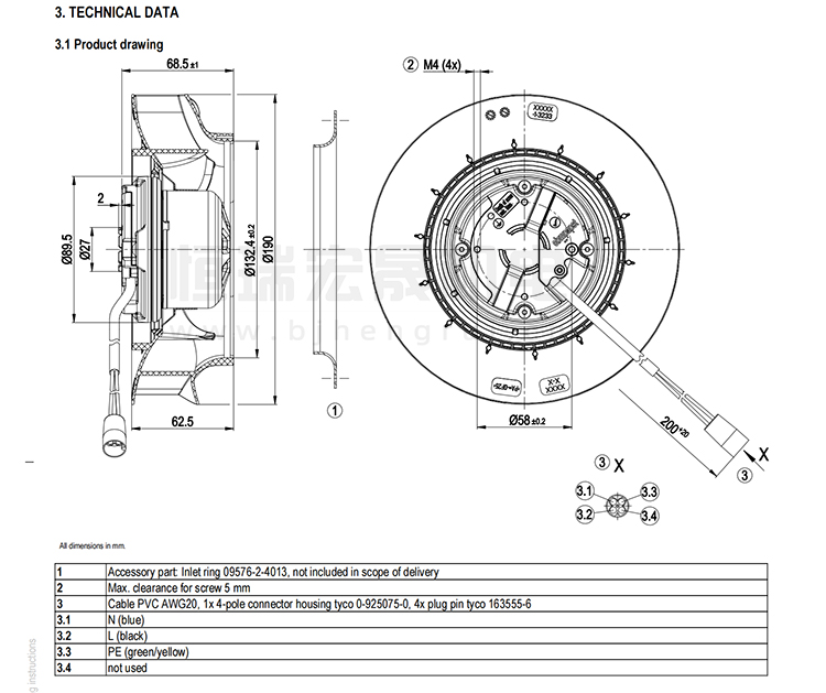 德國ebmpapst R3G190-RB01-08離心風機結構圖