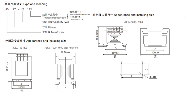 JBK5系列變壓器適用于交流50/60Hz,輸入電壓不超過(guò)1120V,輸出額定電壓不超過(guò)1120V,作為各行各業(yè)的機(jī)械設(shè)備,一般電器控制電源和工作、信號(hào)燈的電源之用。